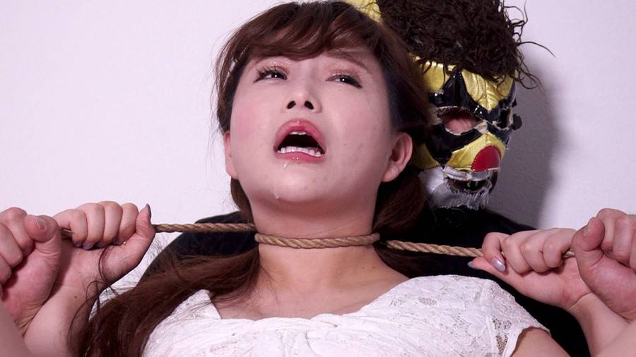 縄でゴリゴリ首を潰され美女がもがく