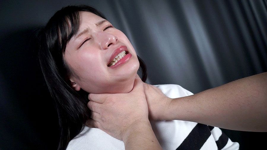 美少女が屈強な男の首絞めで喉をゴリゴリ潰され苦痛の表情!